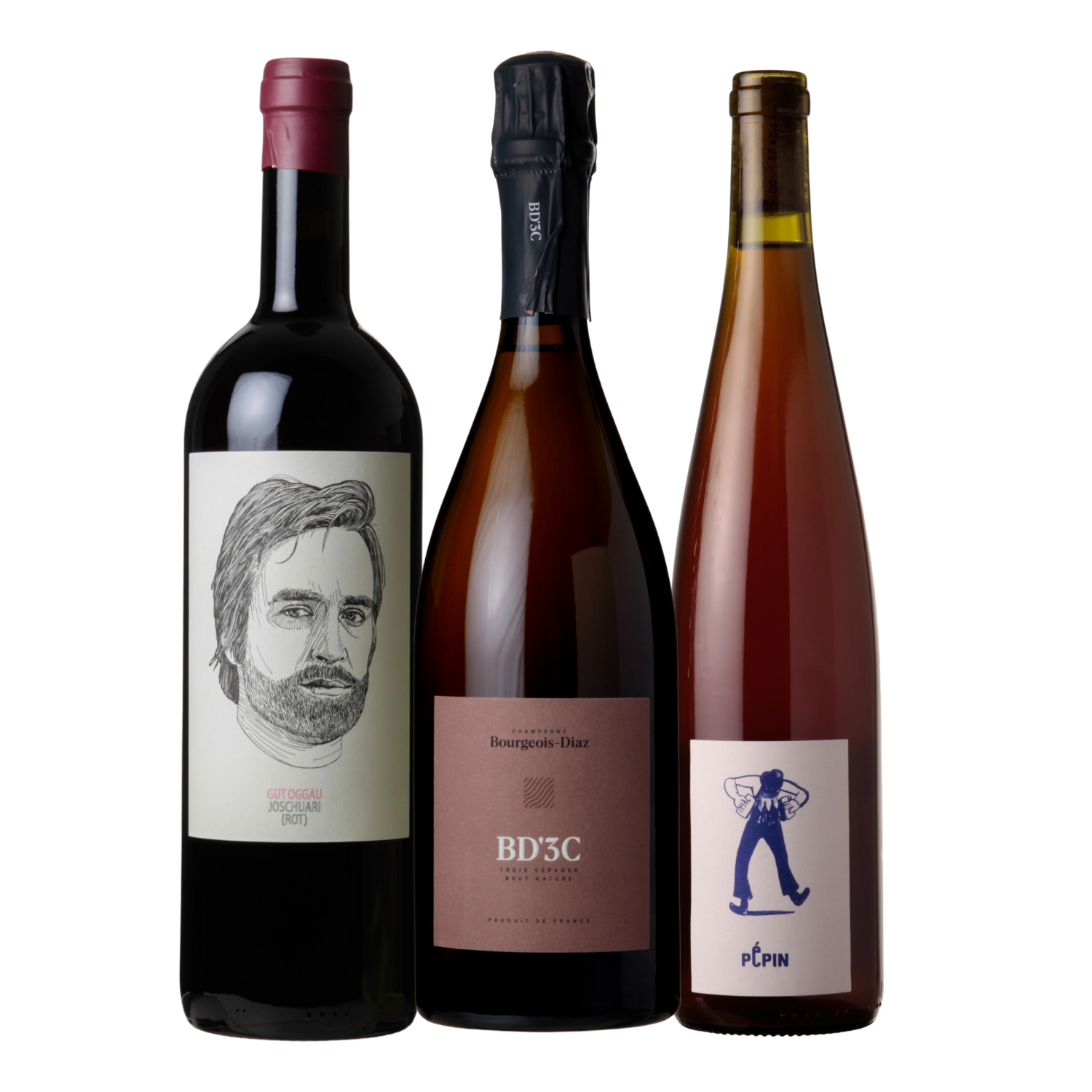 Þrjár flöskur úr efstu hillunni. Austurrískt rauðvín, gæðakampavín og dúnmjúkt gulvín. Algjört bingó.