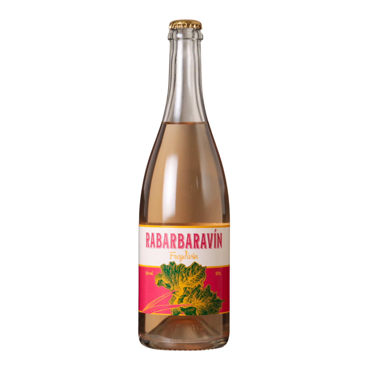 Bruggað úr heimaræktuðum rabarbara, íslensku vatni, sykri og geri. Engin viðbætt efni af